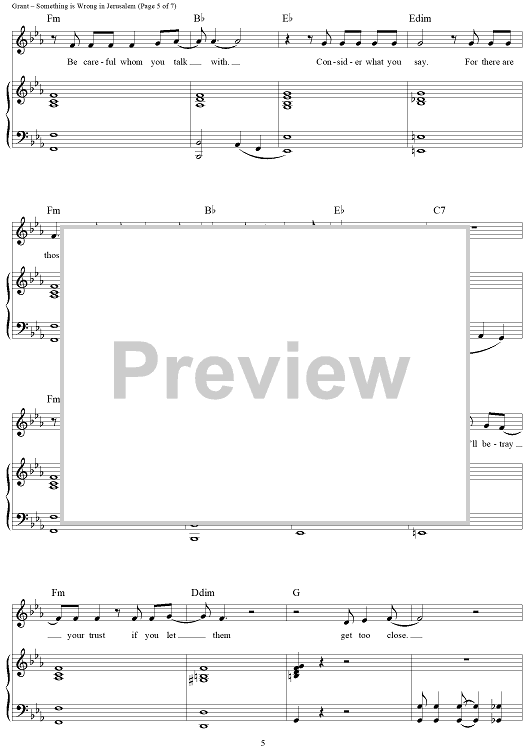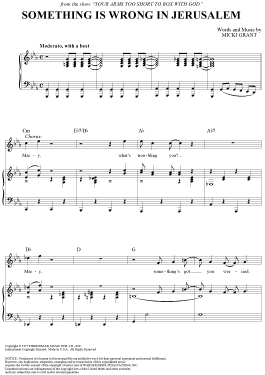 Digital Sheet Music for Something is Wrong in Jerusalem by Micki Grant scored for Piano/Vocal/Chords; id:267593