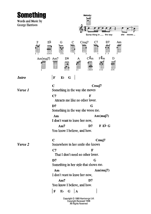 Digital Sheet Music for Something by The Beatles, George Harrison scored for Ukulele/Vocal; id:466539