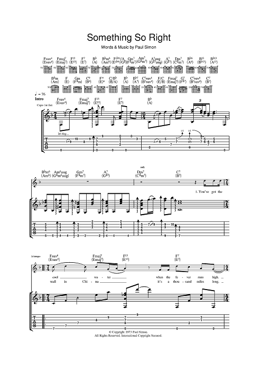 Digital Sheet Music for Something So Right by Paul Simon scored for Guitar Tab; id:392764