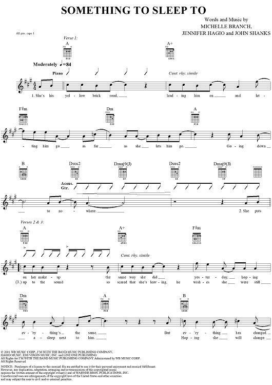 "Something to Sleep To" Sheet Music by Michelle Branch
