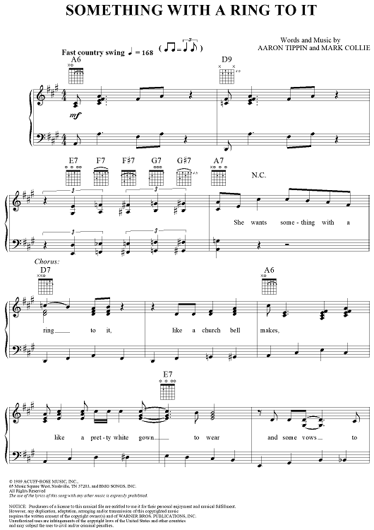 Digital Sheet Music for Something With A Ring To It by Garth Brooks, Aaron Tippin, Mark Collie scored for Piano/Vocal/Chords; id:260241