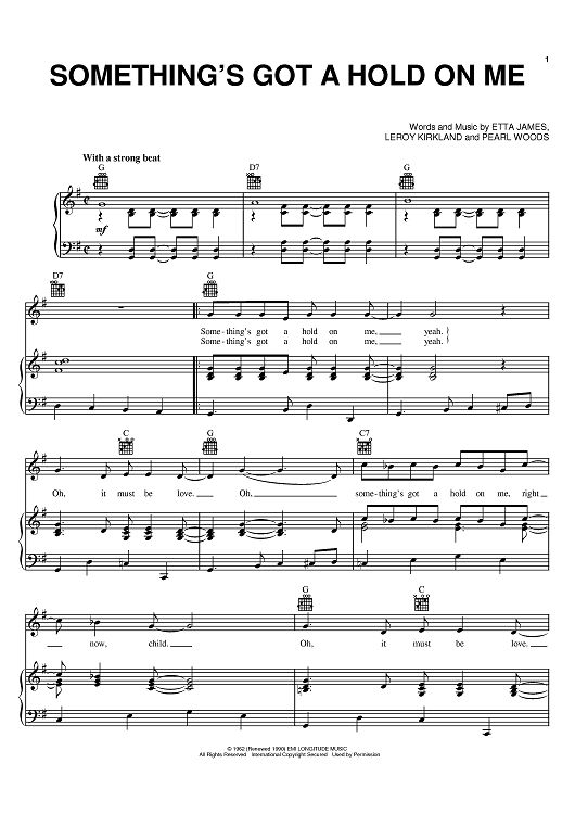Digital Sheet Music for Something's Got A Hold On Me by Pearl Woods, Leroy Kirkland, Etta James scored for Piano/Vocal/Chords; id:384705