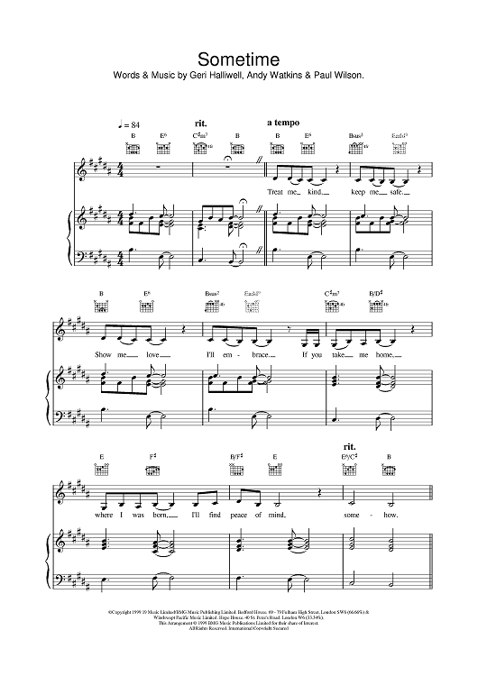 Digital Sheet Music for Sometime by Geri Halliwell scored for Piano/Vocal/Chords; id:376890