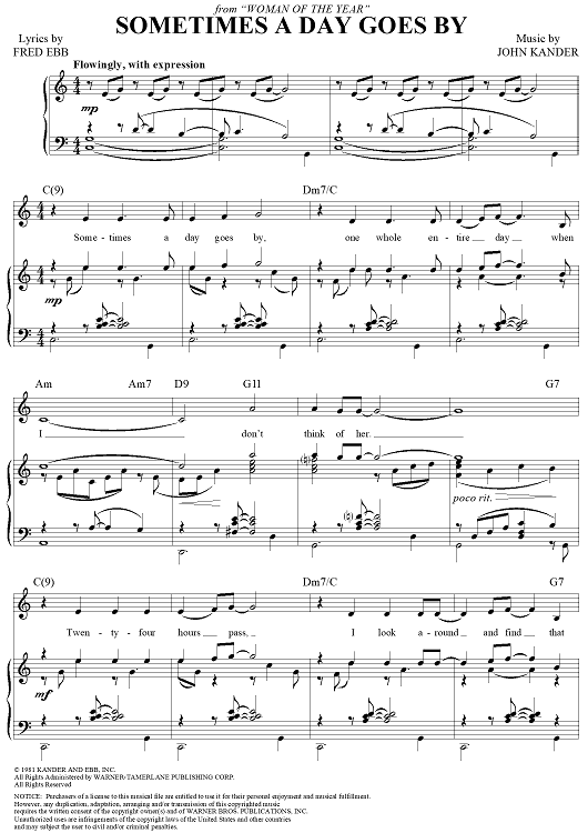 Digital Sheet Music for Sometimes A Day Goes By by John Kander, Fred Ebb scored for Piano/Vocal/Chords; id:313165