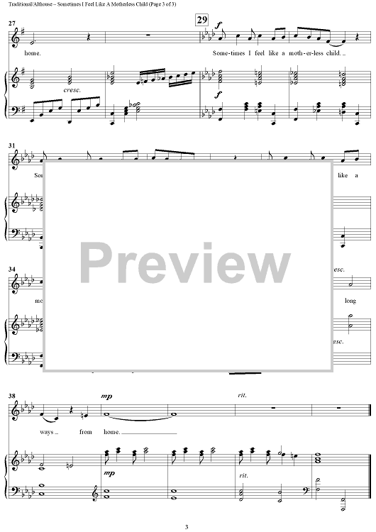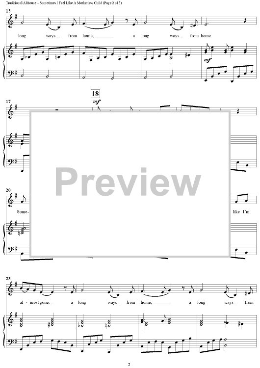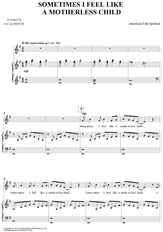 "Sometimes I Feel Like A Motherless Child" Sheet Music by American Folk Spiritual