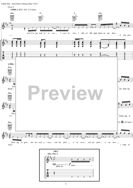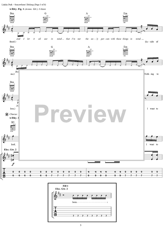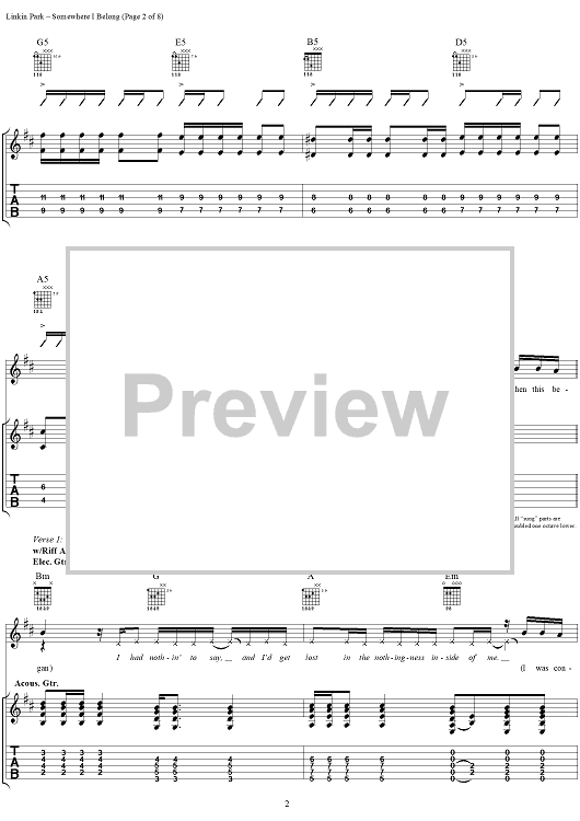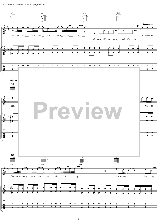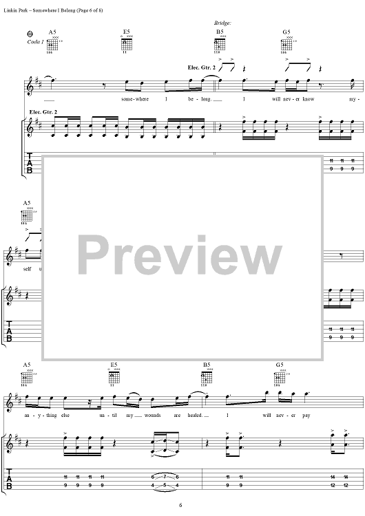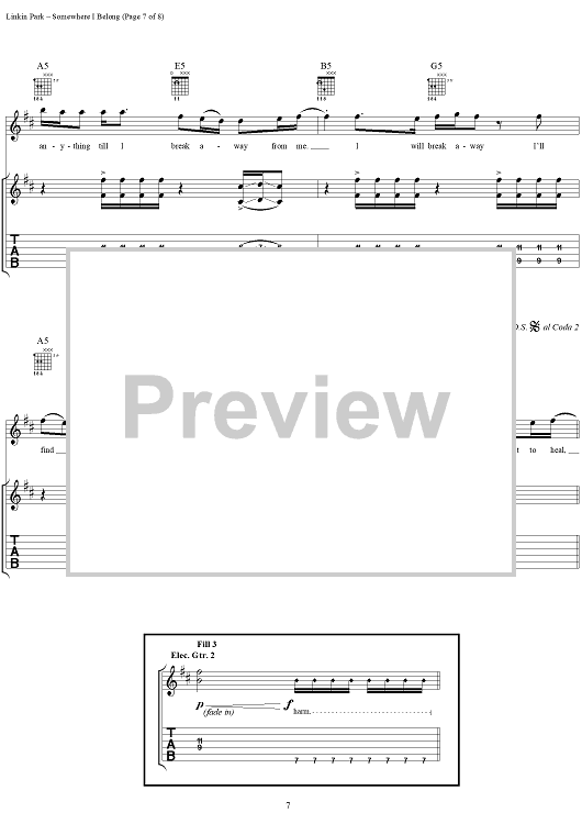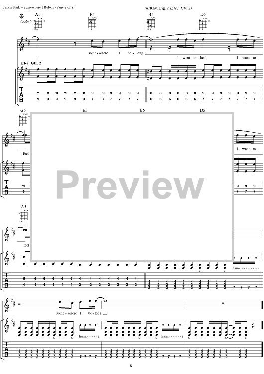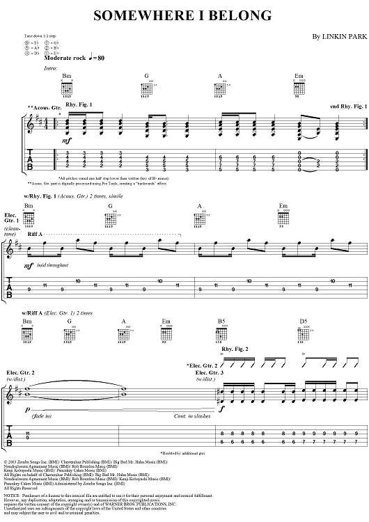 Digital Sheet Music for Somewhere I Belong by Linkin Park scored for Guitar Tab/Vocal; id:297391