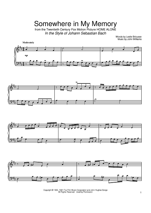 "Somewhere In My Memory" Sheet Music by John Williams