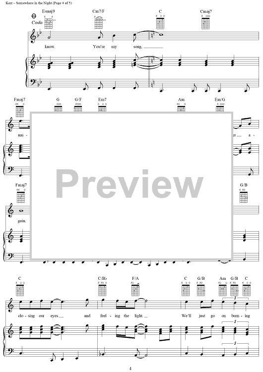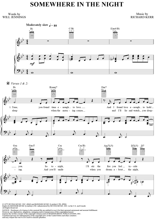 Digital Sheet Music for Somewhere In The Night by Will Jennings, Barry Manilow, Richard Kerr scored for Piano/Vocal/Chords; id:241288