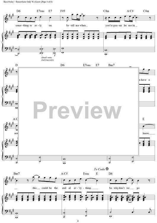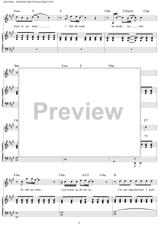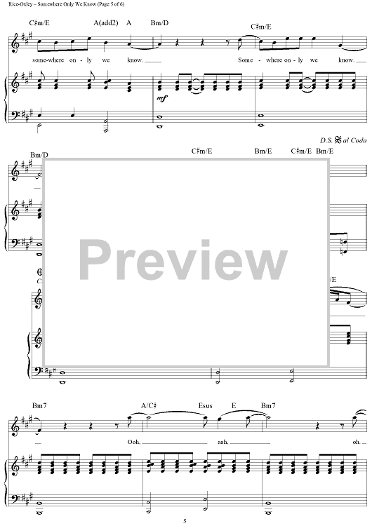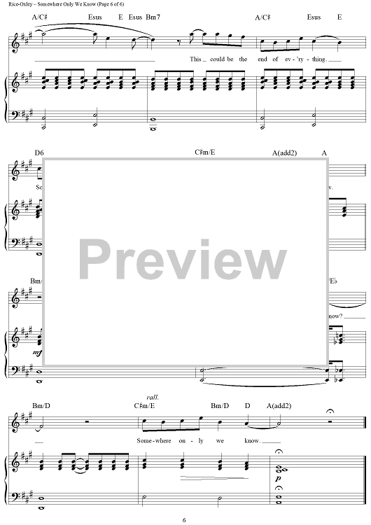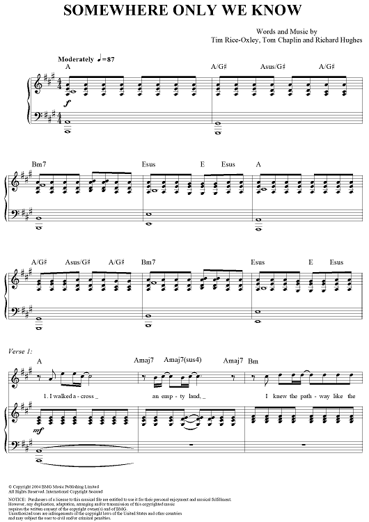 Digital Sheet Music for Somewhere Only We Know by Keane, Tim Rice-Oxley, Tom Chaplin, Richard David Hughes scored for Piano/Vocal/Chords; id:321278