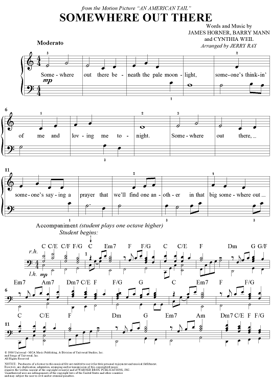 Digital Sheet Music for Somewhere Out There by Jerry Ray, Barry Mann, Cynthia Weil, James Horner scored for Easy Piano/Vocal; id:286271