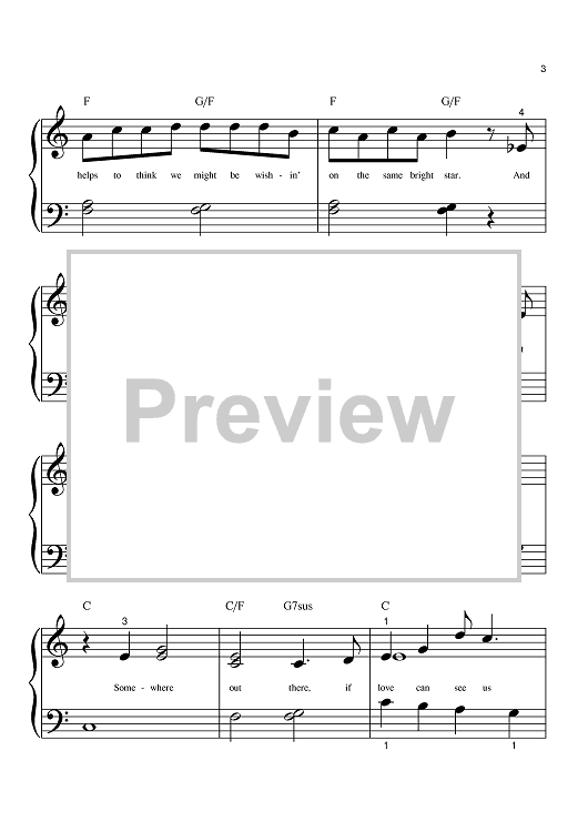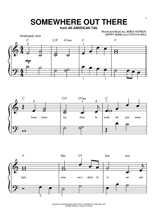 Digital Sheet Music for Somewhere Out There by Linda Ronstadt, Barry Mann, James Ingram, Cynthia Weil, Fievel, James Horner scored for Big Note Piano; id:384155