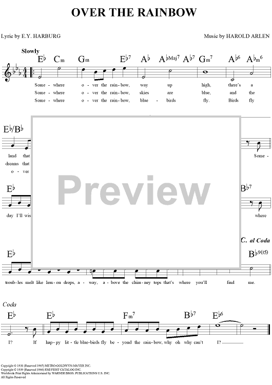 Digital Sheet Music for (Somewhere) Over the Rainbow by Harold Arlen, Judy Garland, E.Y. "Yip" Harburg scored for Lead Sheet; id:109525