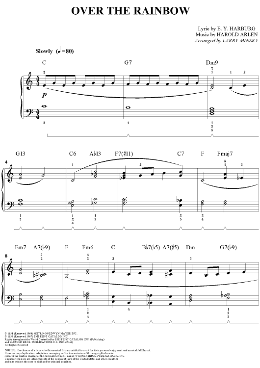 Digital Sheet Music for (Somewhere) Over the Rainbow by Harold Arlen, E.Y. "Yip" Harburg, Larry Minsky scored for Easy Piano; id:316050