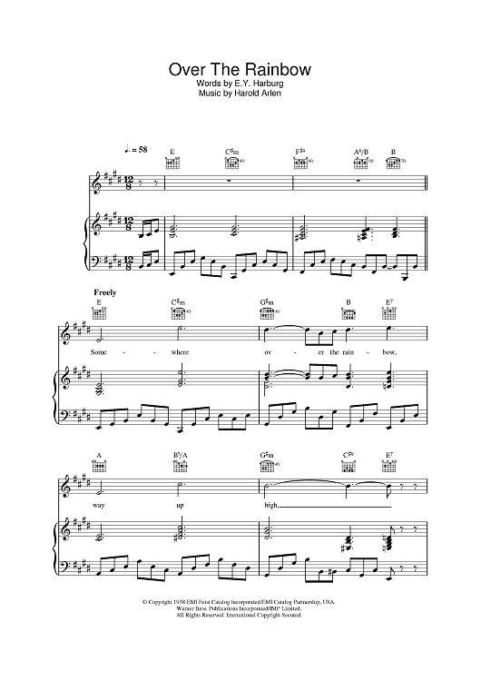 Digital Sheet Music for (Somewhere) Over the Rainbow by Harold Arlen, E.Y. "Yip" Harburg, Shayne Ward scored for Piano/Vocal/Chords; id:394700