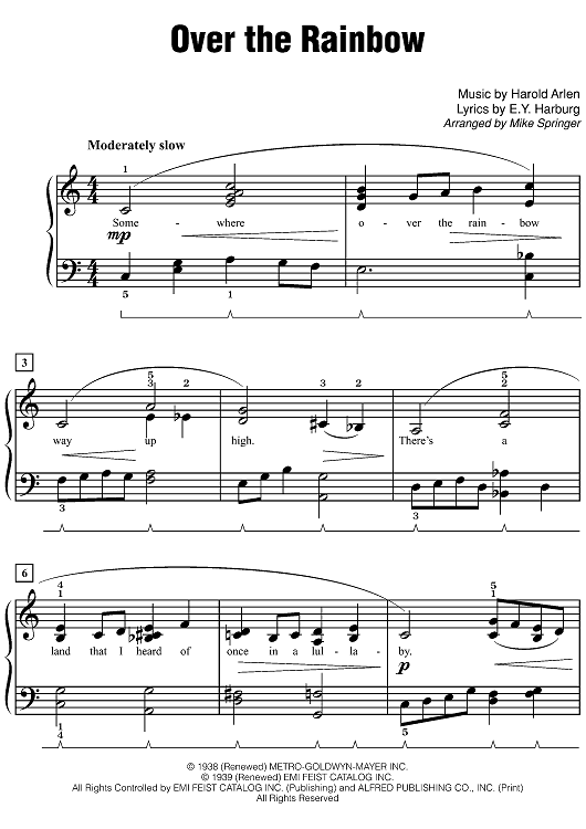 Digital Sheet Music for (Somewhere) Over the Rainbow by Harold Arlen, E.Y. "Yip" Harburg, Mike Springer scored for Easy Piano; id:497925