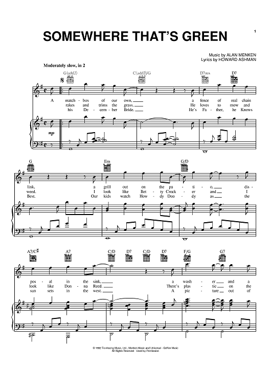 Digital Sheet Music for Somewhere That's Green by Alan Menken, Howard Ashman scored for Piano/Vocal/Chords; id:374872