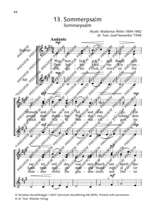 "Sommarpsalm" Sheet Music by Waldemar Åhlén