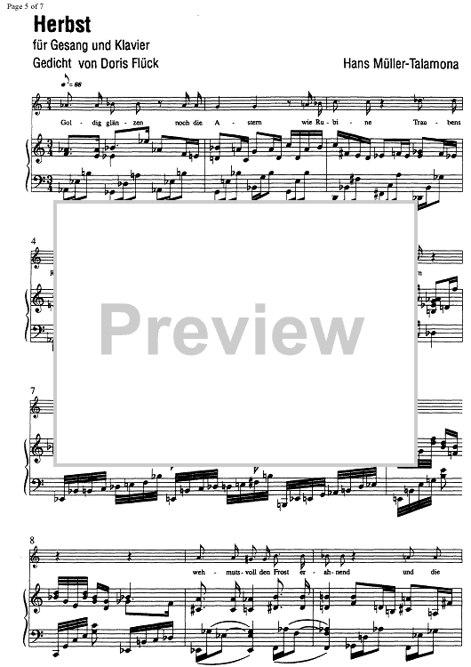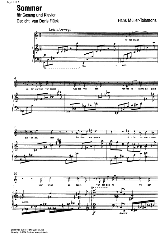 Digital Sheet Music for Sommer - Papillon - Herbst - Score by , Hans Müller-Talamona scored for Soprano or Tenor/Piano; id:334384