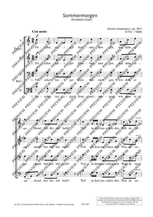 "Sommermorgen in C major - Choral Score" Sheet Music by Moritz Hauptmann