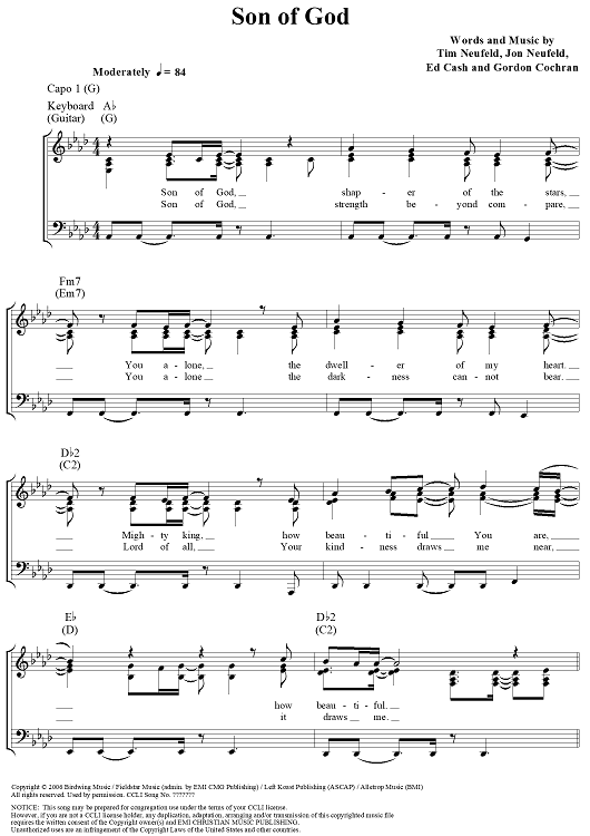 Digital Sheet Music for Son of God by Ed Cash, Tim Neufeld, Jon Neufeld, Gordon Cochran scored for Piano/Vocal/Chords; id:321383