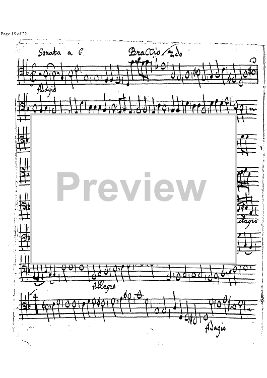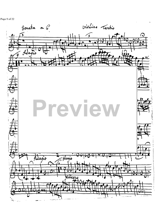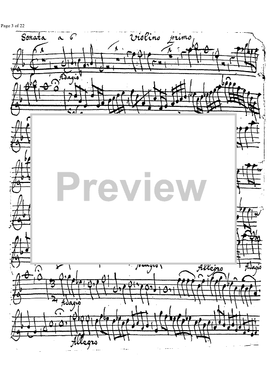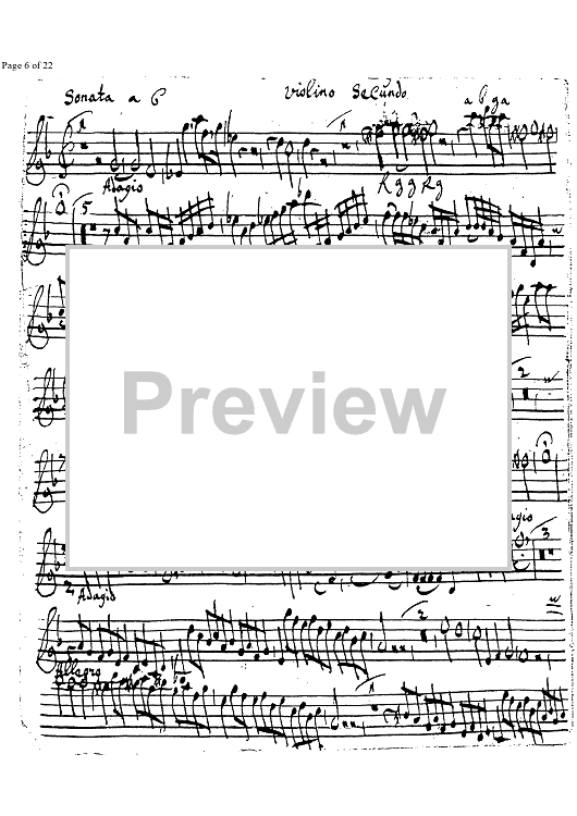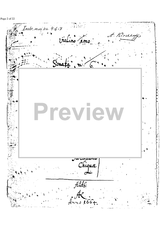 Digital Sheet Music for Sonata a 6 by , Andreas Kirchoff, Eilif Zachariassen scored for 3 Violins/2 Violas/Continuo; id:331467