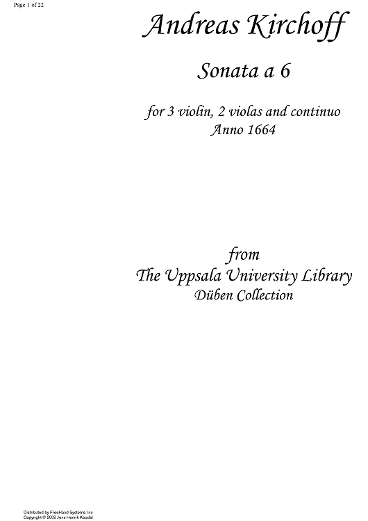 "Sonata a 6" Sheet Music by Andreas Kirchoff