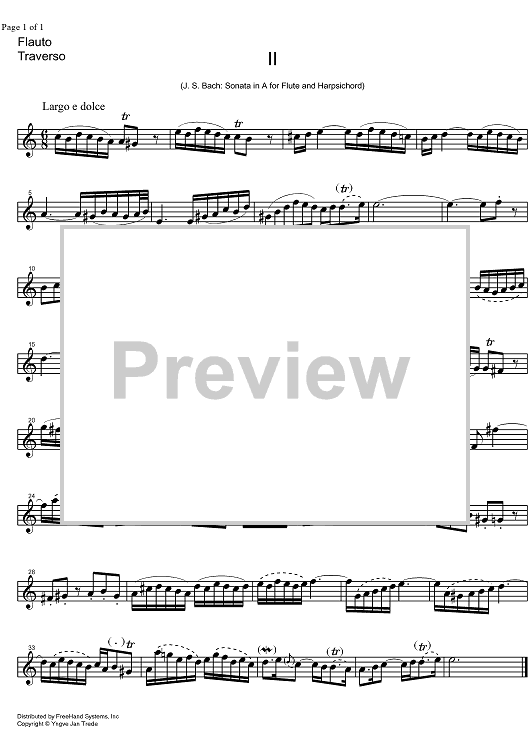 Digital Sheet Music for Sonata A Major BWV 1014 - Score by Johann Sebastian Bach, Yngve Jan Trede scored for Transverse Flute or Flute/Harpsichord or Piano; id:327203