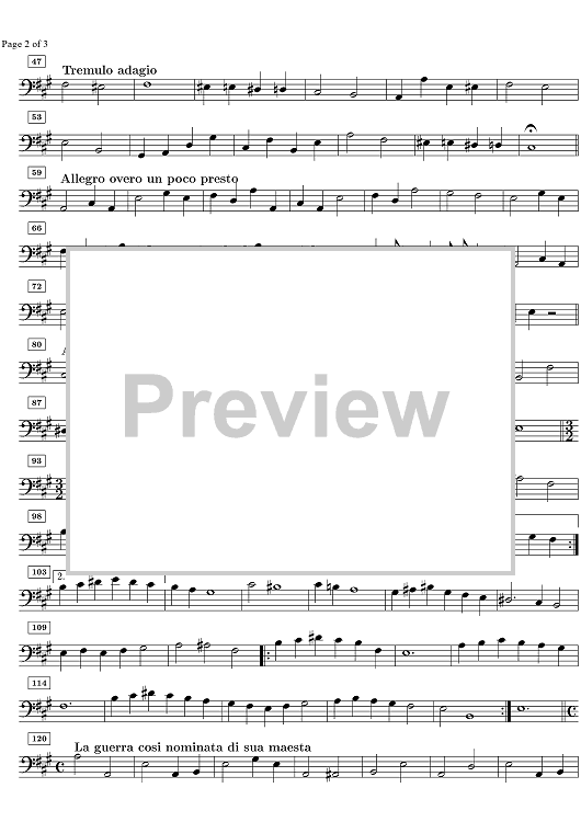 "Sonata A Major La Guerra - Continuo" Sheet Music by Johann Paul von Westhoff