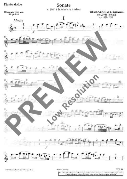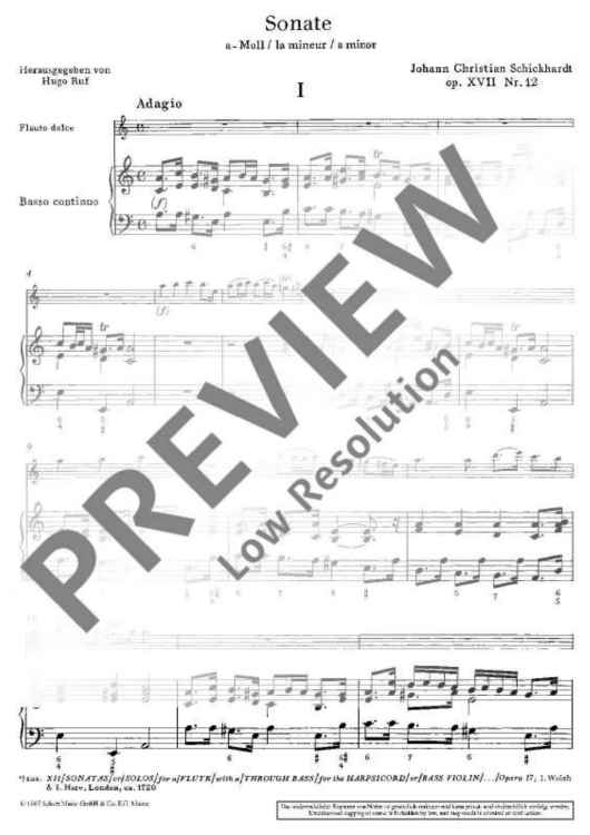 "Sonata a minor" Sheet Music by Johann Christian Schickhardt