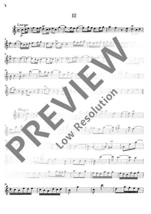 Boismortier is considered to be one of the most popular and most hard-working composers of his time. The original title of this sonata in A Minor indicates flutes, violins and other instruments as well suited for performance. The composer arranged the first melody part in such a way that it can be played by an alto recorder without any changes. Scored for string chorus, the sonata achieves a very good tonal effect. With soloistic scoring, three equal instruments (e.g. three violins) or three completely different instruments (e.g. flute, violin, oboe) are best suited for the performance of the upper parts.
