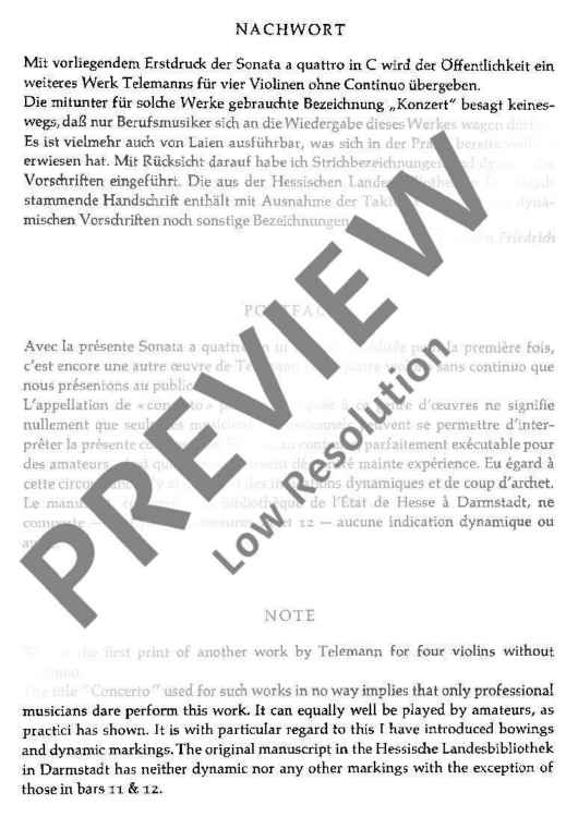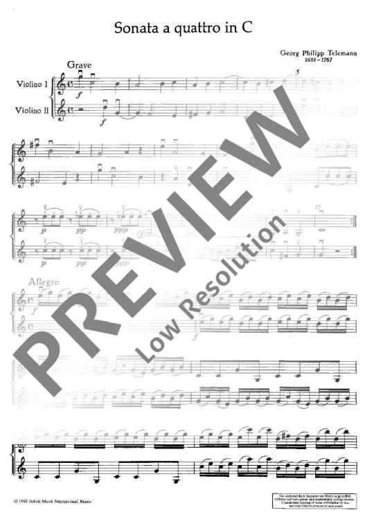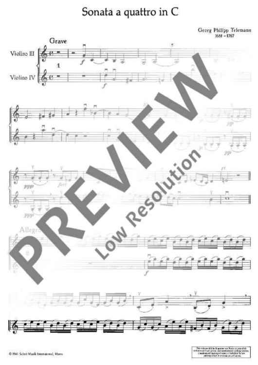 "Sonata a quattro in C - Set of Parts" Sheet Music by Georg Philipp Telemann