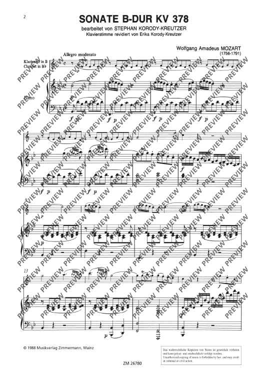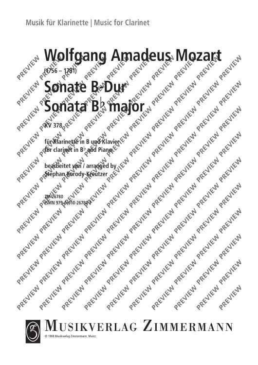Mozart did not write a single work for clarinet and keyboard instrument. Stephan Korody-Kreutzer's arrangement of the Sonata in B flat major K. 378 fills this gap. In this form, it is one of his absolute favourite pieces and he often includes it in the programmes of his concerts. While remaining almost completely true to Mozart's original, his arrangement is yet oriented towards the specific possibilities of the clarinet.