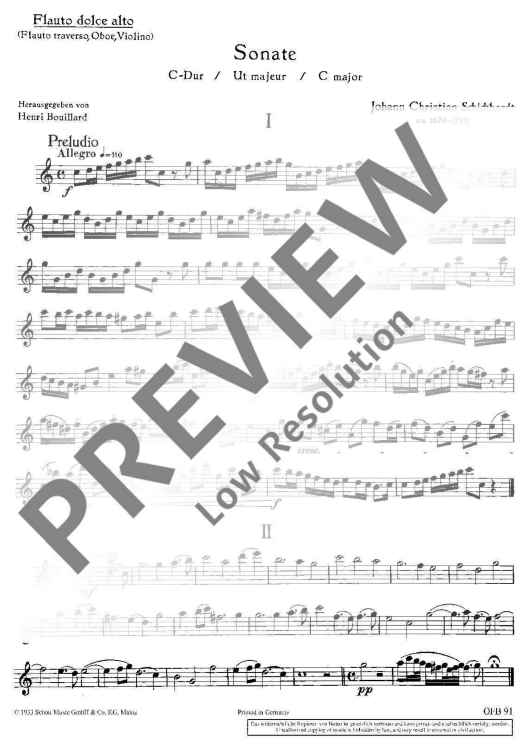 "Sonata C Major" Sheet Music by Johann Christian Schickhardt