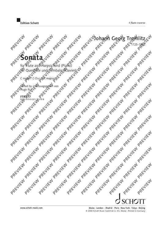 Johann Georg Tromlitz (1725-1805) was solo flutist of the 'Große Konzert' in Leipzig, the predecessor of the famous Gewandhaus Orchestra. He was not only a gifted performer but equally renowned as composer, flute-maker, teacher and author of influential treatises on educational matters.