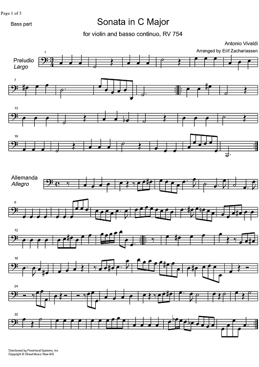 Digital Sheet Music for Sonata C Major RV754 - Cello by Antonio Vivaldi, Eilif Zachariassen scored for Violin/Continuo; id:325462