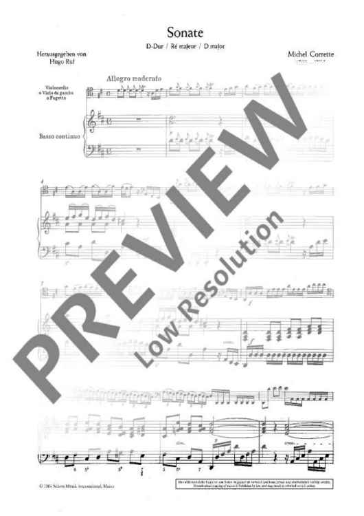Digital Sheet Music for Sonata D Major by Michel Corrette scored for Cello (bassoon, Viola Da Gamba) And Basso Continuo; id:471870