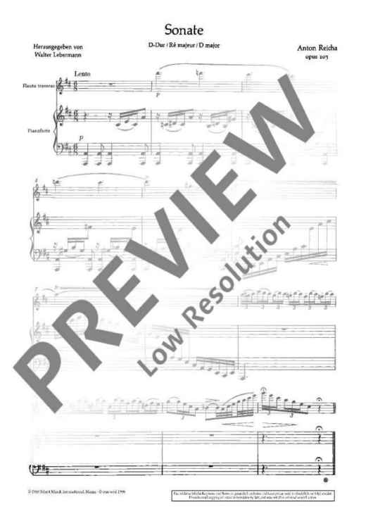 Digital Sheet Music for Sonata D Major by Anton Joseph Reicha scored for Flute And Piano; id:475618