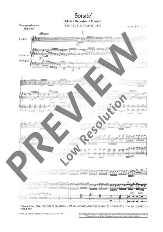 Digital Sheet Music for Sonata D Major by Michel Corrette scored for Violin And Obligatory Harpsichord; id:476575