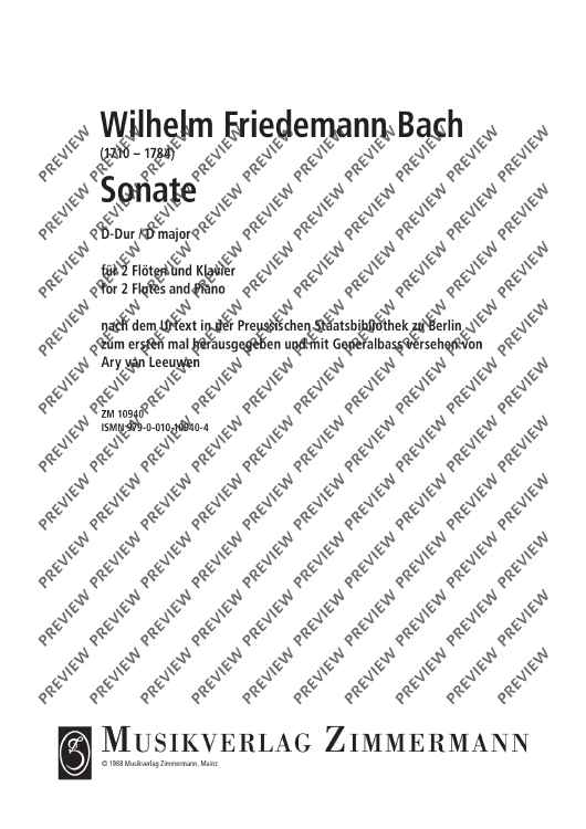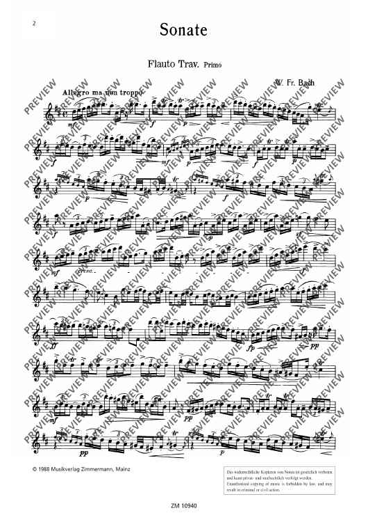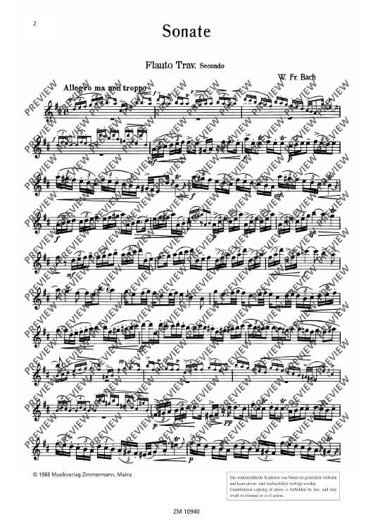 "Sonata D Major" Sheet Music by Wilhelm Friedemann Bach