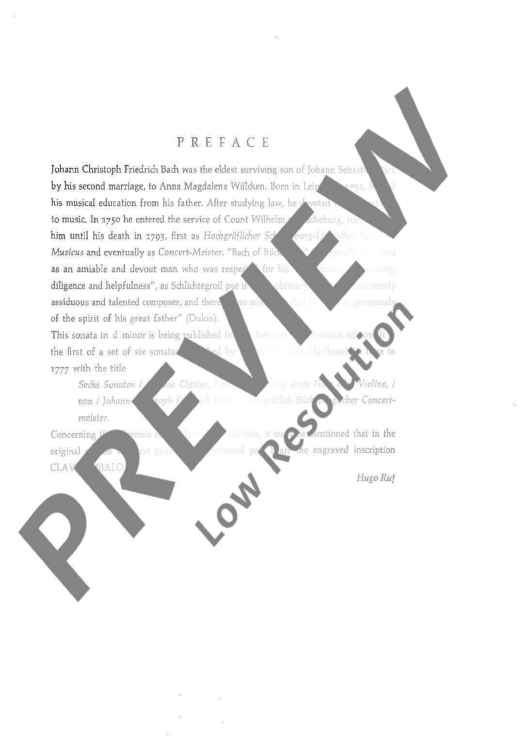 "Sonata d minor" Sheet Music by Johann Christoph Friedrich Bach