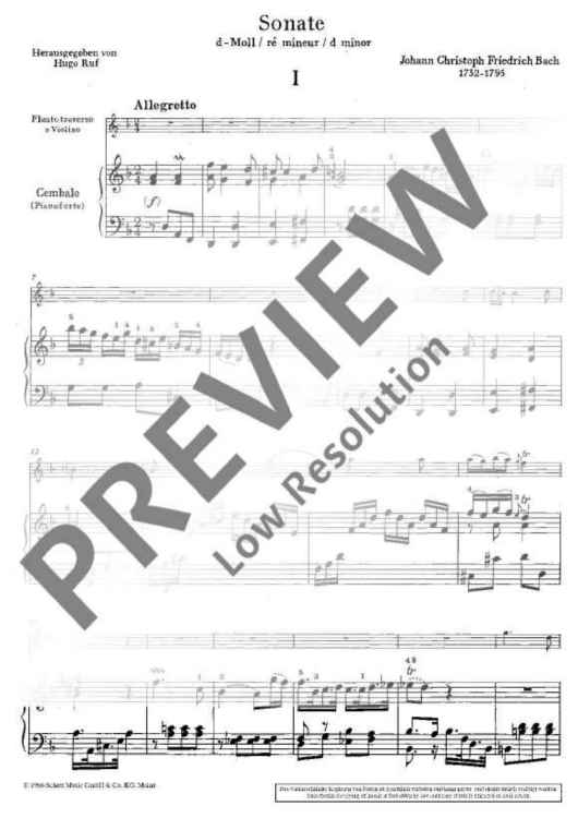 Digital Sheet Music for Sonata d minor by Johann Christoph Friedrich Bach scored for Flute (violin) And Obligatoryes Harpsichord (piano); id:475577