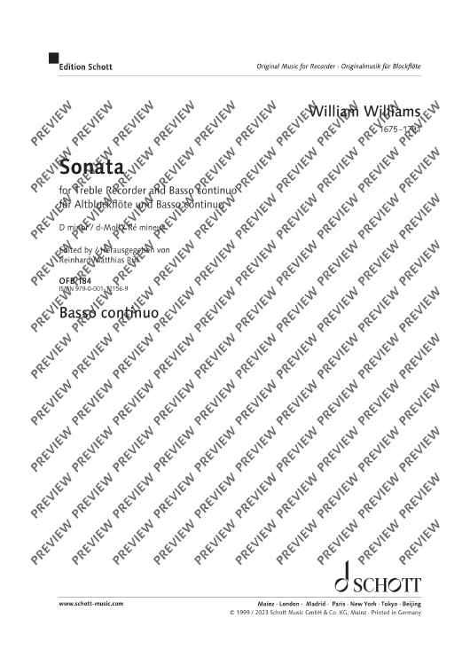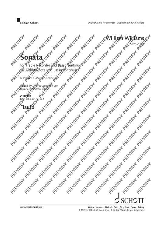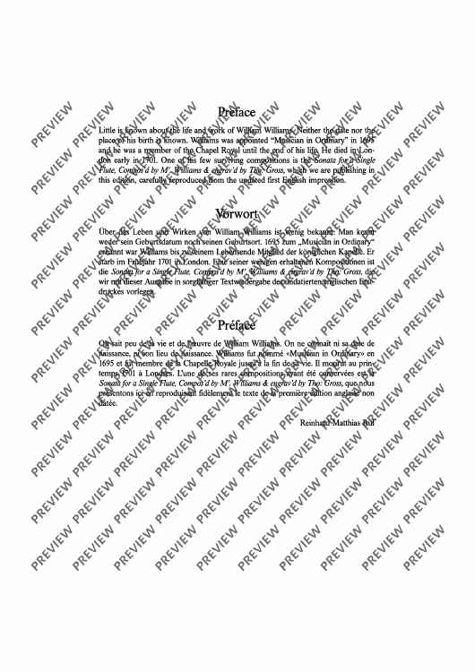 Williams was a member of the King's Chapel in London but seems to have left only few compositions. He died in 1701. The basso continuo part in this sonata is quite interesting and makes this a very suitable piece for ensemble teaching in music schools.