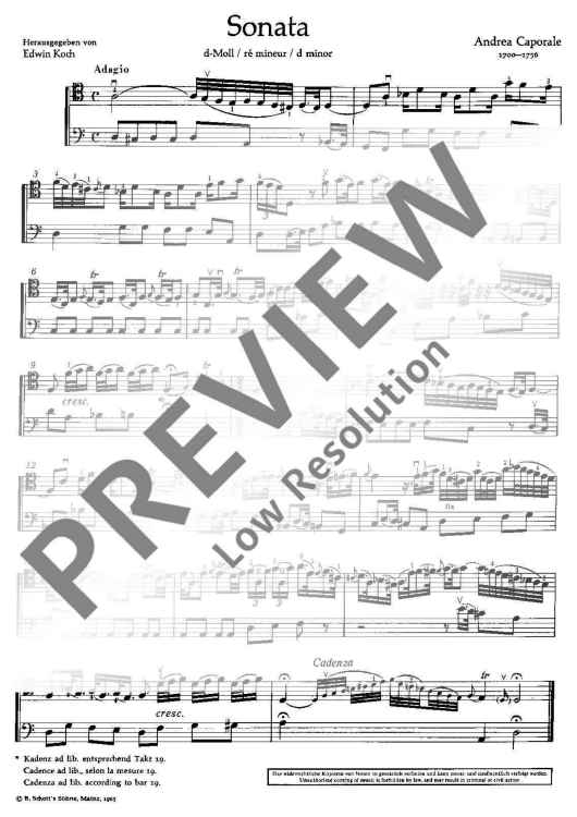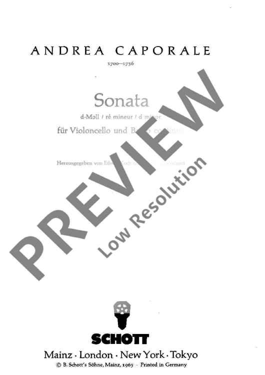 Digital Sheet Music for Sonata d minor by Andrea Caporale scored for Cello And Basso Continuo; id:484029