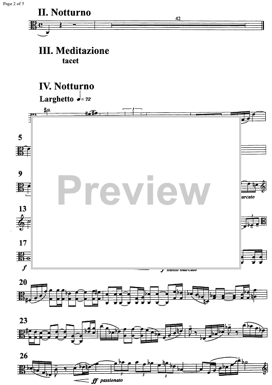 "Sonata da camera No. 1 ... meditation and nocturnes - Viola" Sheet Music by Ivo Petric