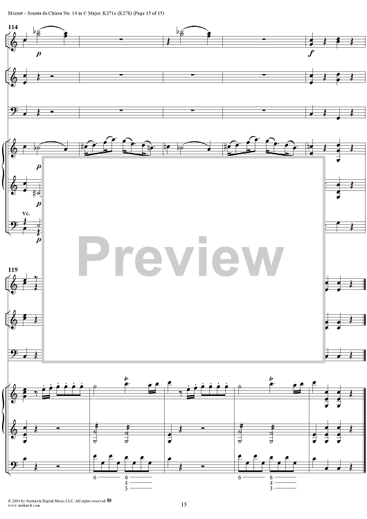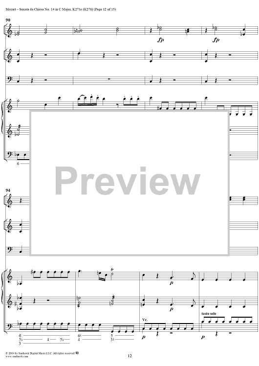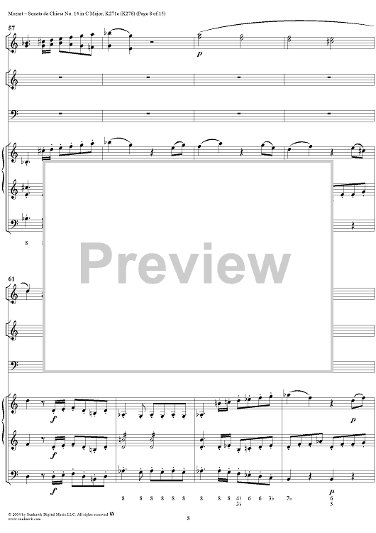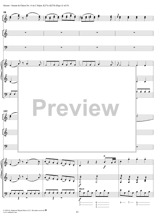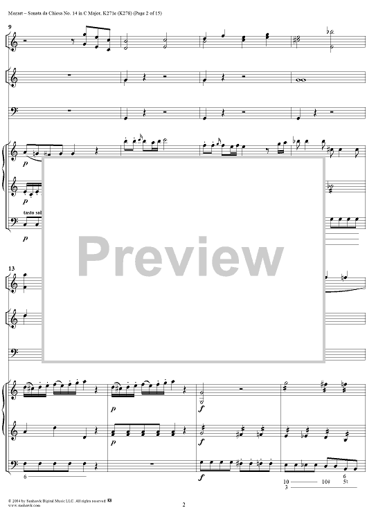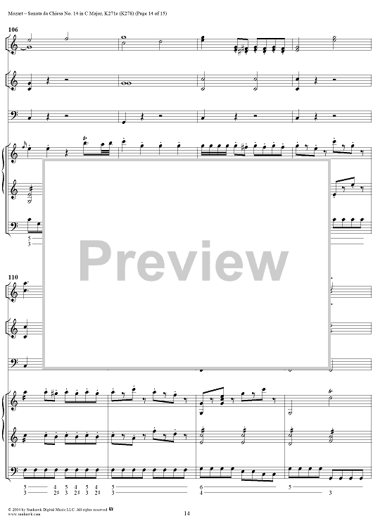 Digital Sheet Music for Sonata da Chiesa No. 14 in C Major, K271e (K278) - Full Score by Wolfgang Amadeus Mozart scored for Orchestra/Organ; id:292344