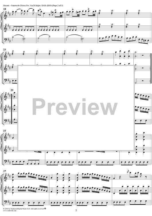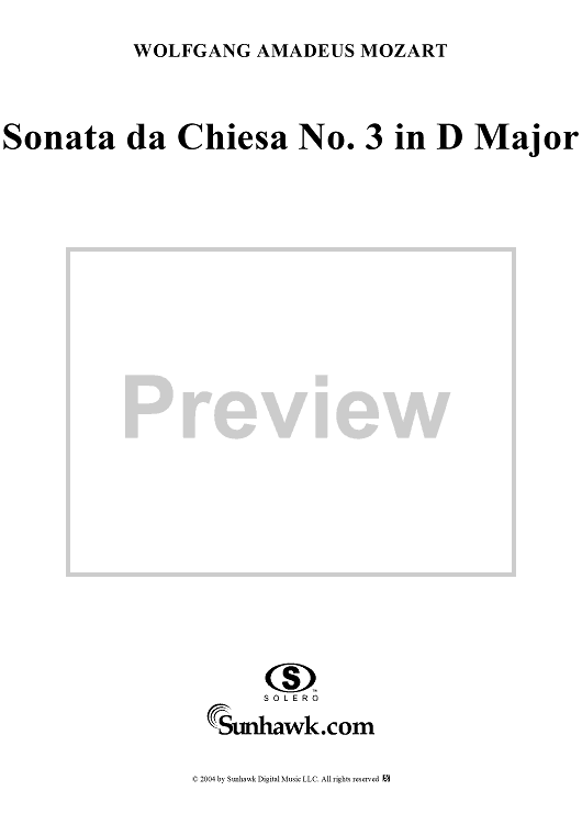 Digital Sheet Music for Sonata da Chiesa No. 3 in D Major, K41k (K69) - Full Score by Wolfgang Amadeus Mozart scored for Two Violins, Bass and Organ; id:292335