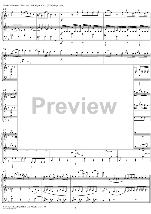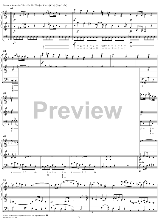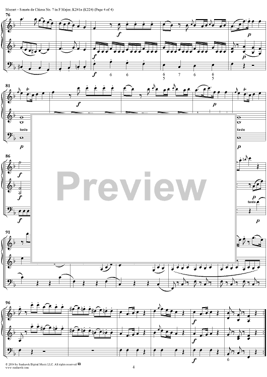 Digital Sheet Music for Sonata da Chiesa No. 7 in F Major, K241a (K224) - Full Score by Wolfgang Amadeus Mozart scored for Two Violins, Bass and Organ; id:292339