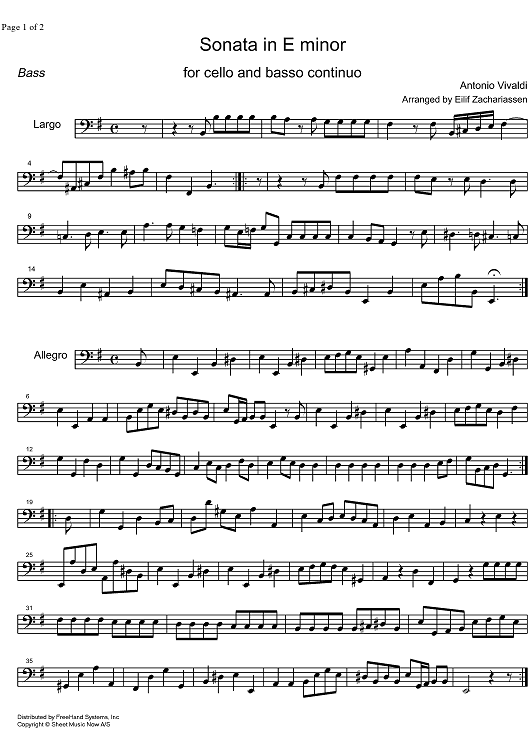 Digital Sheet Music for Sonata e minor - Bass by Antonio Vivaldi, Eilif Zachariassen scored for Cello/Continuo; id:325140