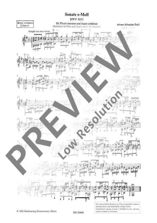 "Sonata E minor in E minor" Sheet Music by Johann Sebastian Bach