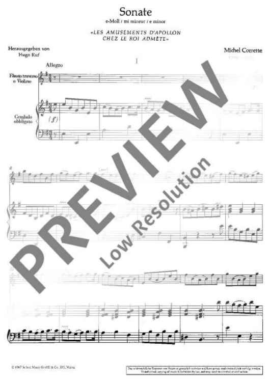 Digital Sheet Music for Sonata e minor by Michel Corrette scored for Flute (violin) And Harpsichord; id:482788